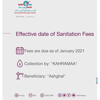 Qatar General Electricity and Water Corporation (Kahramaa) has reminded that the due date of sanitation charges is January 2021.